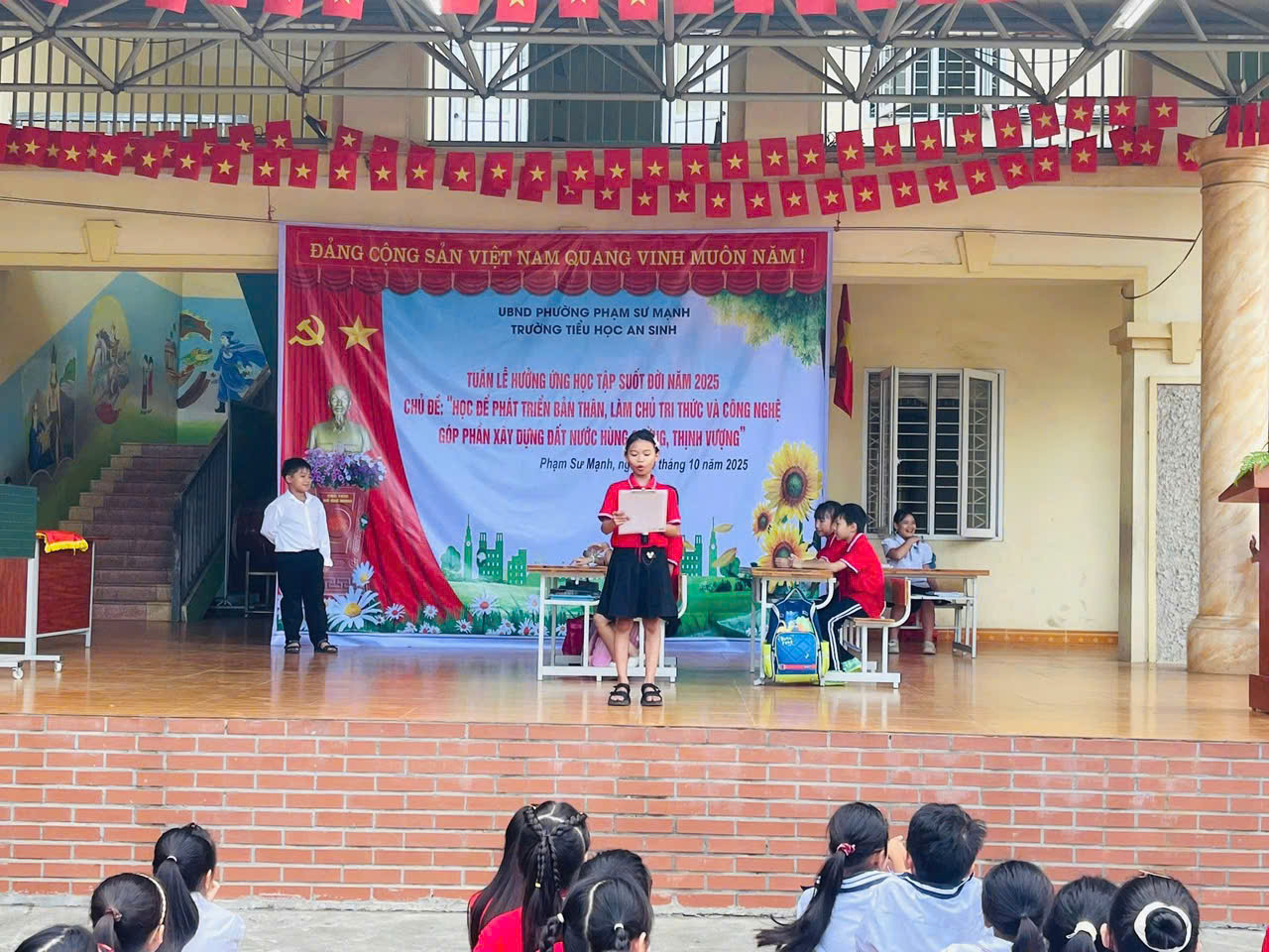 Trường Tiểu học An Sinh phát động phong trào hưởng ứng “Tuần lễ Học tập suốt đời năm 2025”, CHỦ ĐỀ: HỌC ĐỂ PHÁT TRIỂN BẢN THÂN, LÀM CHỦ TRI THỨC VÀ CÔNG NGHỆ GÓP PHẦN XÂY DỰNG ĐẤT NƯỚC HÙNG CƯỜNG, THỊNH VƯỢNG. chúng ta cùng nhau hướng về một chủ đề vô cùng ý nghĩa trong đó -Sách, như những người bạn đồng hành, đã và đang mở ra cho chúng ta những chân trời kiến thức mới, những câu chuyện kỳ thú và những bài học sâu sắc về cuộc sống. Mỗi câu chuyện trong cuốn sách đều chứa đựng những lời dạy quý giá của cha ông Việc đọc sách không chỉ giúp chúng ta nâng cao vốn từ, trau dồi khả năng tư duy mà còn rèn luyện tính kiên trì và nuôi dưỡng tâm hồn.