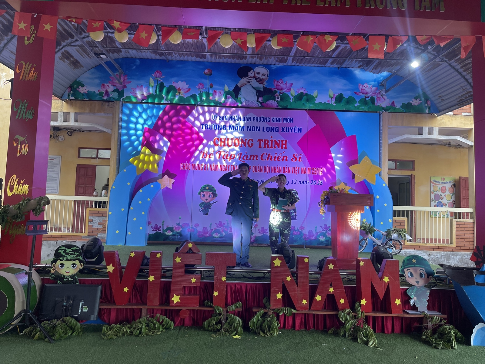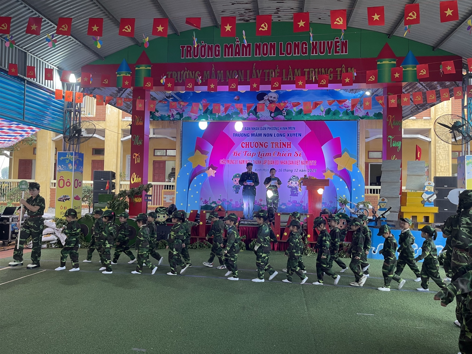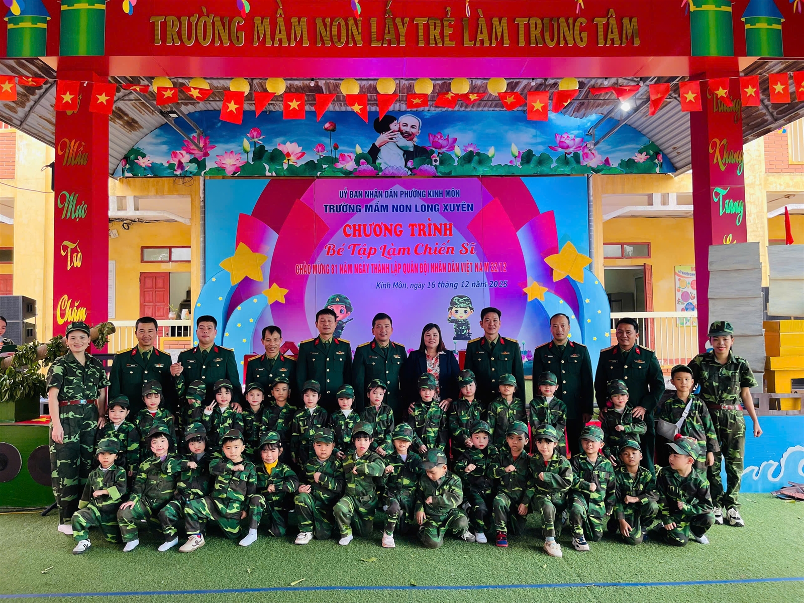 Hôm nay ngày 16/12/2025 Trường Mầm non Long Xuyên đã long trọng tổ chức hoạt động trải nghiệm “Bé tập làm chiến sỹ” trong không khí trang nghiêm, sôi nổi và đầy ý nghĩa.