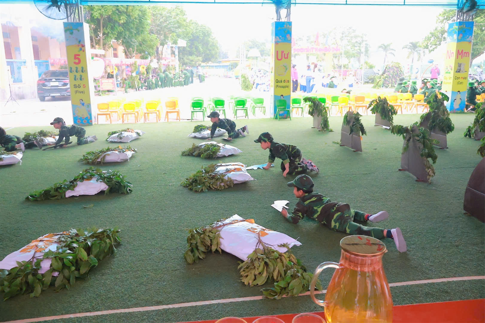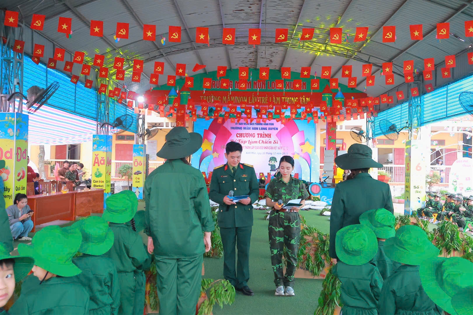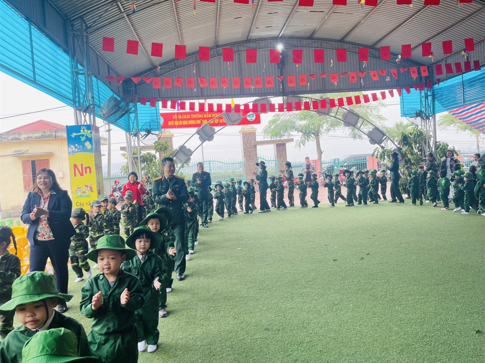 Đến dự chương trình, nhà trường vinh dự được đón tiếp các đồng chí Chỉ huy Quân sự Phòng thủ khu vực 2, cùng sự hiện diện của các bậc phụ huynh và đặc biệt là 16 nhóm lớp với những “chiến sỹ nhí” vô cùng đáng yêu.