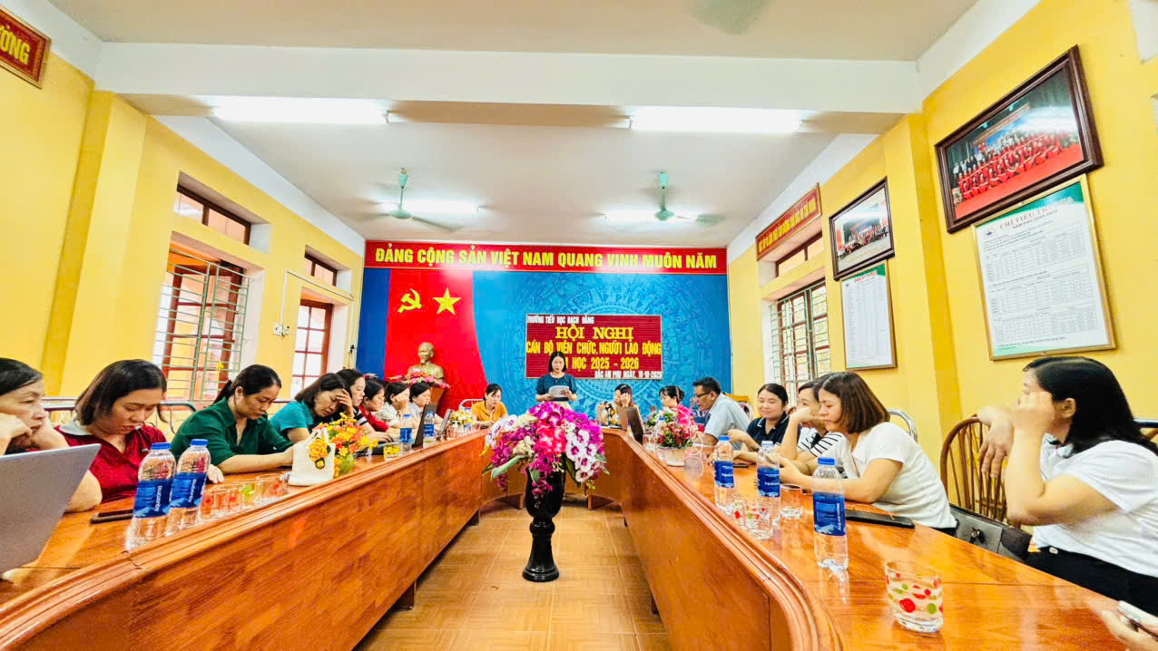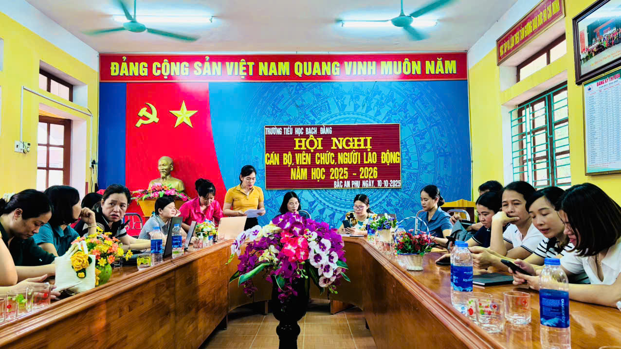 Thứ 7 ngày 10/10/2025 Trường Tiểu học Bạch Đằng tổ chức Hội nghị cán bộ, viên chức và người lao động năm học 2025–2026. Sự kiện diễn ra trang trọng, đúng quy định, khẳng định quyết tâm xây dựng môi trường giáo dục kỷ cương, chất lượng, nhân văn; phát huy sức mạnh đồng thuận của tập thể để thực hiện thắng lợi nhiệm vụ năm học mới.