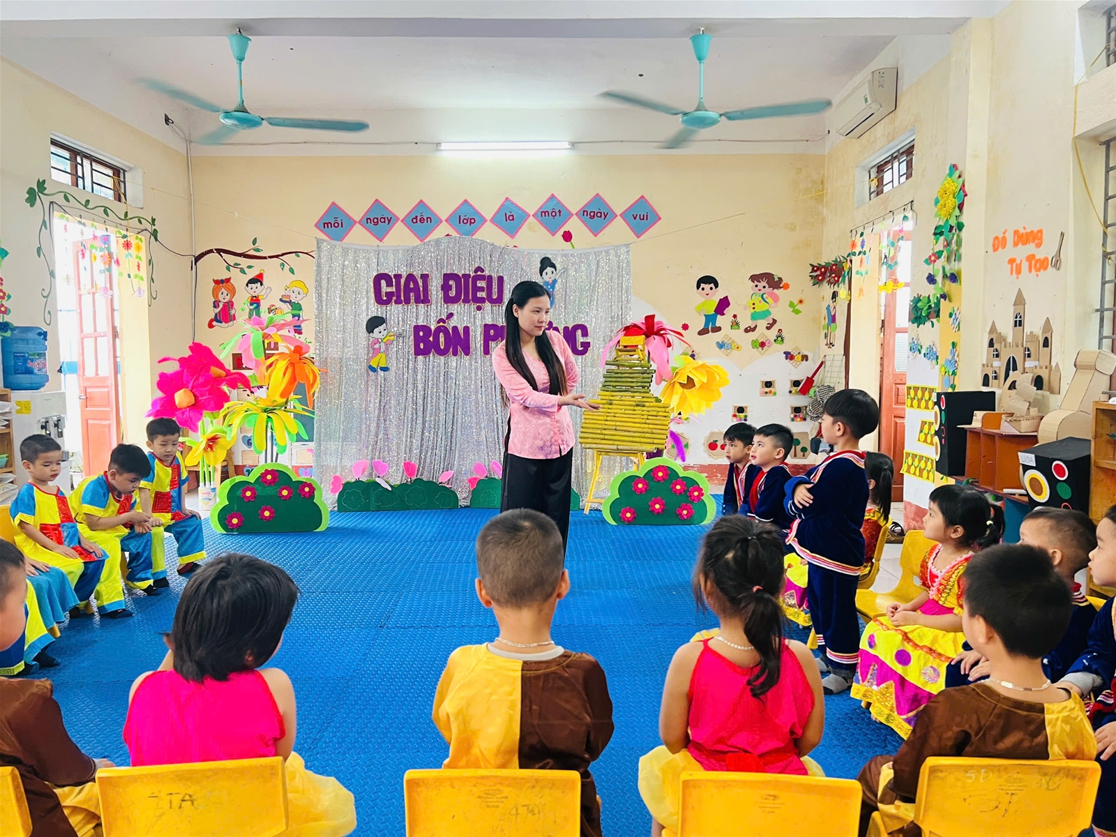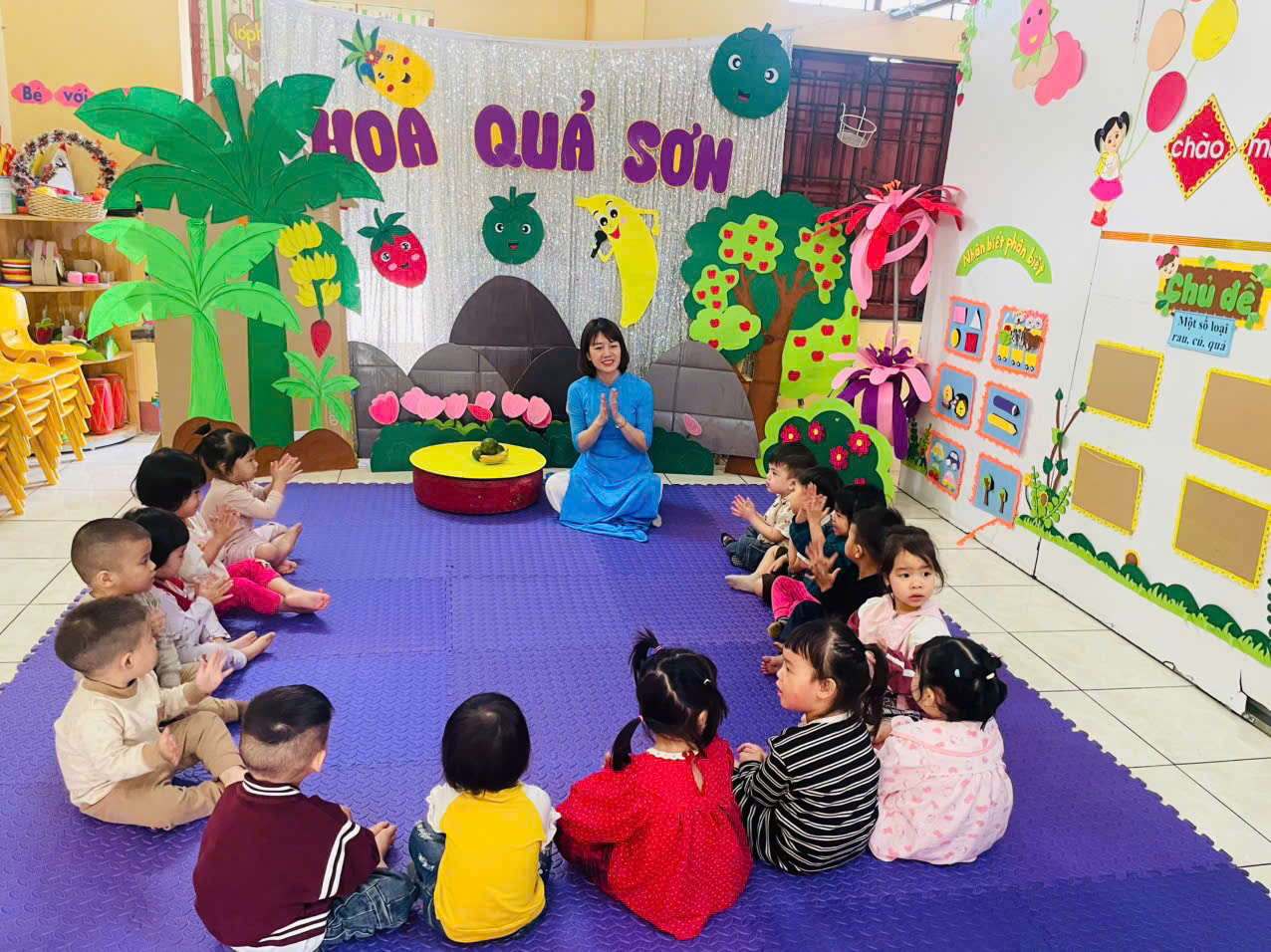 Sau những ngày vui chơi, âm nhạc chính là "liều thuốc" tuyệt vời nhất để trẻ lấy lại hứng khởi sau mấy ngày nghỉ tết. Trẻ không chỉ được học hát, vận động theo nhạc mà còn được tham gia các trò chơi âm nhạc đầy kịch tính. Thông qua các bài hát về mùa xuân, trẻ phát triển khả năng cảm thụ âm nhạc, sự tự tin và kỹ năng phối hợp nhóm. Những nụ cười rạng rỡ và những động tác nhún nhảy ngộ nghĩnh đã tạo nên một không gian lớp học tràn đầy năng lượng. Những mâm ngũ quả ngày Tết chính là giáo cụ trực quan tuyệt vời nhất cho tiết học này. Trải nghiệm thực tế: Trẻ được trực tiếp quan sát, sờ nếm và phân biệt các loại quả đặc trưng của mùa xuân như: Cam, quýt, bưởi, dưa hấu...Kỹ năng đạt được: Trẻ nhận biết được đặc điểm, màu sắc, hương vị và lợi ích của các loại trái cây đối với sức khỏe. Đây là cách giúp trẻ hình thành thói quen ăn uống lành mạnh ngay từ nhỏ. Trò chuyện về Quê hương - Tết cổ truyền. Đây là mảng nội dung ấm áp và ý nghĩa nhất trong đợt kiểm tra chuyên môn lần này. Kết nối cảm xúc: Cô và trò cùng nhau ôn lại những kỷ niệm đẹp về ngày Tết: đi chúc Tết ông bà, nhận lì xì, gói bánh chưng hay tham gia các lễ hội tại địa phương. Giáo dục truyền thống: Qua những câu chuyện kể, trẻ hiểu thêm về ý nghĩa của sự đoàn viên, nét đẹp văn hóa quê hương và lòng biết ơn đối với người thân. Lời nhắn nhủ từ nhà trường: Hoạt động kiểm tra chuyên môn tháng 2 không chỉ nhằm nâng cao tay nghề cho đội ngũ giáo viên, mà quan trọng hơn hết là tạo ra một môi trường học tập "Học mà chơi - Chơi mà học", giúp các con sớm bắt nhịp lại với nền nếp sinh hoạt sau kỳ nghỉ dài. Đây là minh chứng cho tinh thần không ngừng học hỏi, cập nhật xu hướng giáo dục hiện đại của tập thể sư phạm nhà trường. Kiểm tra chuyên môn không phải là tạo áp lực, mà là cơ hội để các cô giáo nhìn lại mình, chia sẻ kinh nghiệm và cùng nhau tiến bộ. Nhìn thấy nụ cười và sự hào hứng của các con trong mỗi hoạt động chính là thành công lớn nhất của người giáo viên mầm non. Hoạt động kiểm tra chuyên môn tháng 2/2026 đã khép lại với nhiều ấn tượng đẹp